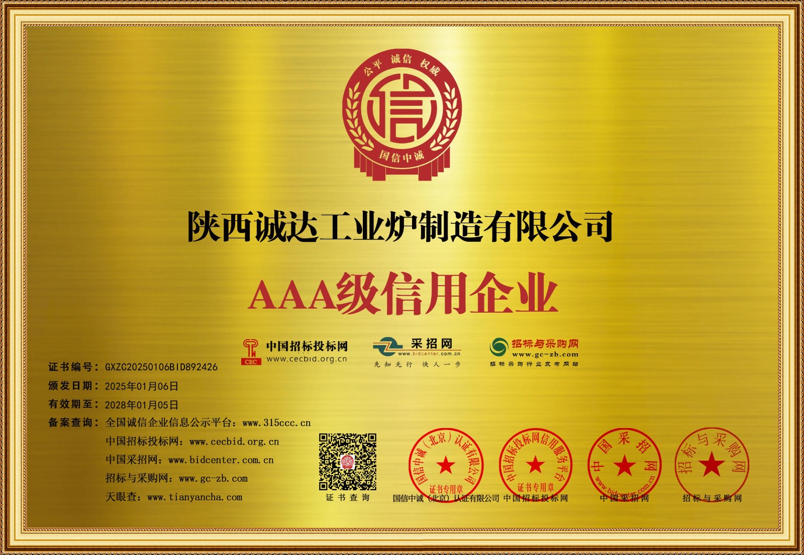 公司榮獲誠信資質(zhì)證書